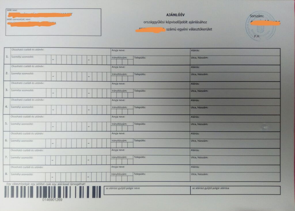 - Az aláírógyűjtő ívet mindig ti töltsétek ki a lakcímkártya adatai alapján.